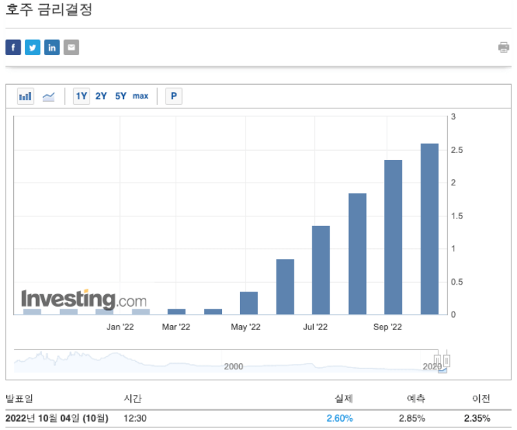 이날 주가 반등에는 연준의 방향 전환 가능성에 대한 기대도 어느 정도 반영되고 있다는 분석이 나왔는데요. 먼저 호주 중앙은행(RBA)이 기준금리를 시장의 예상과 달리 0.25% 포인트 인상하는 데 그치면서 주변국 중앙은행들 또한 글로벌 긴축 속도가 다소 늦어질 수 있다는 기대감이 형성되어 시장은 환호했습니다.