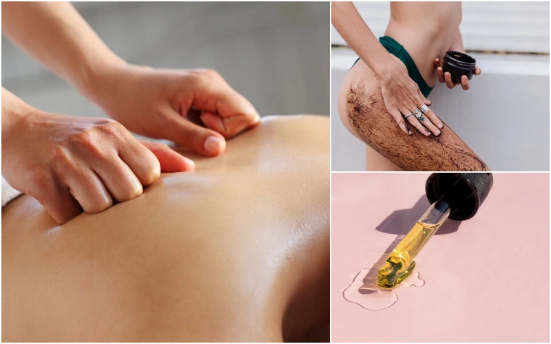 규칙적인 마사지나 피부 스크럽은 혈액 순환을 촉진하고 셀룰라이트를 완화하는 데 도움이 됩니다. 특히 염증을 감소시키고 피부 탄력을 높일 수 있는 천연 오일을 사용하는 것이 효과적인데요. 자세한 사항은 다음과 같습니다.