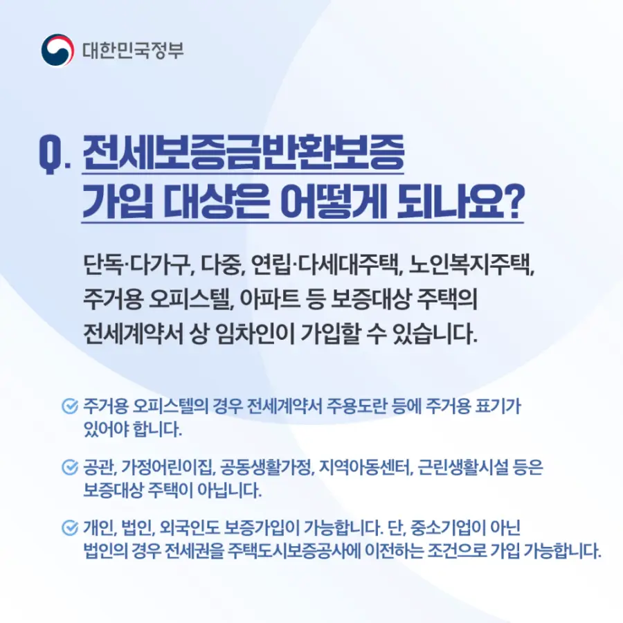 Q2. 전세보증금반환보증은 가입 대상은 어떻게 되나요?